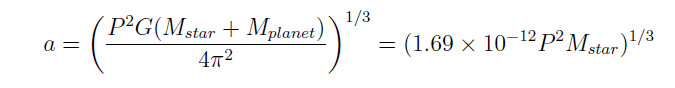 So, enter in the orbital period of your exoplanet (in seconds), and the mass of your star (in kg) into the next two boxes, then hit "Calculate".