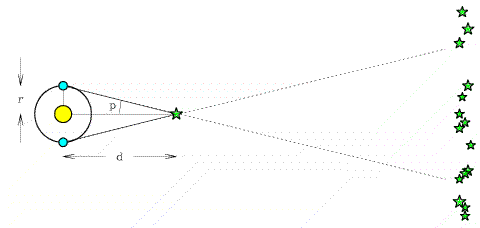 In the figure below, see how the position of a nearby star appears to change against the background panorama of distant stars, as the Earth moves from January to July, and back.
