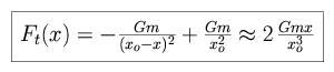Consider a body of radius R, a distance r0 from mass m. The specific (per unit mass) tidal force is