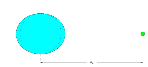 Along the x-axis which runs through the center of both bodies, we can use a Taylor series to approximate this as
